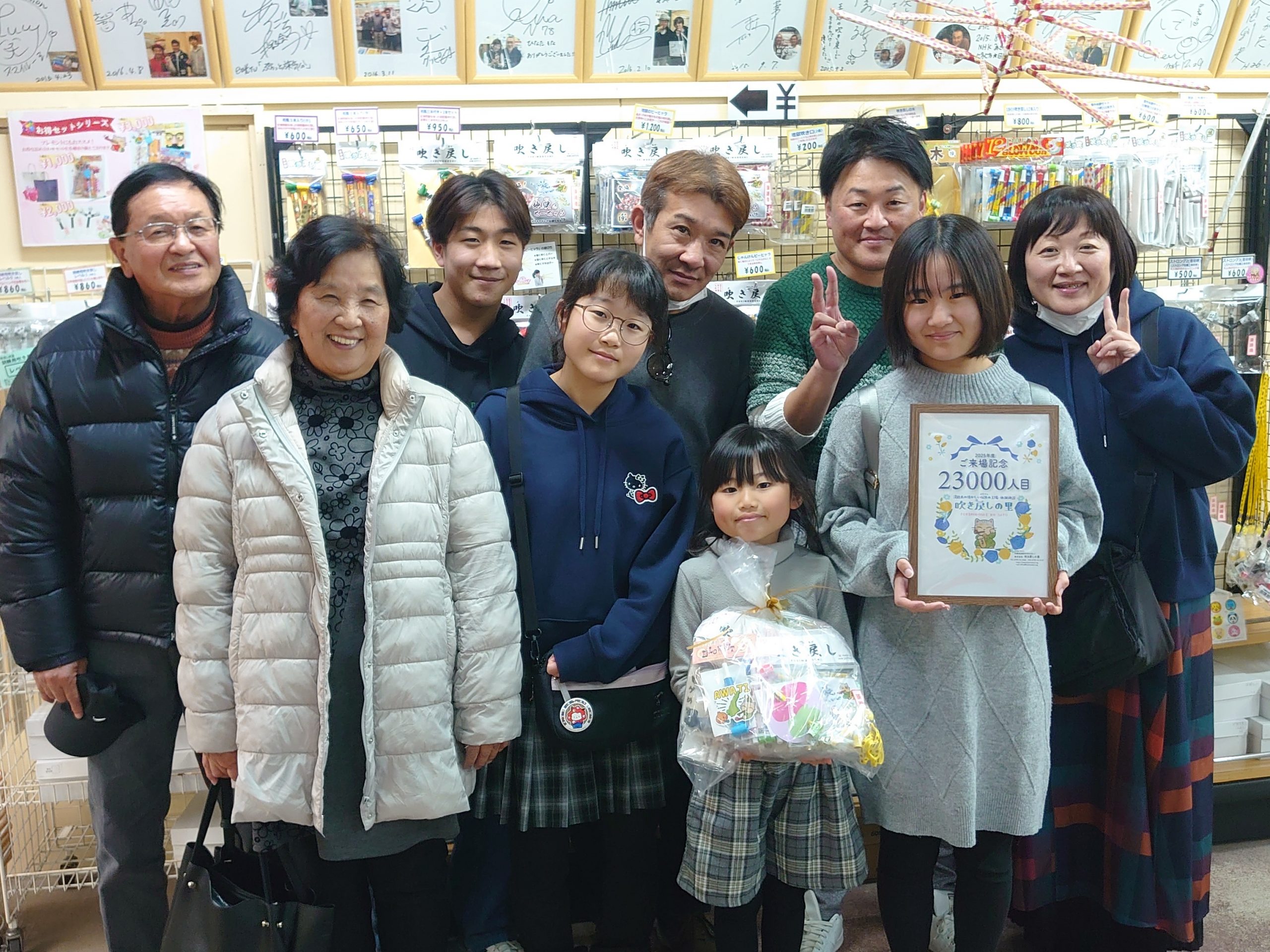 見事今年の23000人目になられた方は、大阪府熊取町よりお越しのお客さまです。11名様でお越しいただきました。