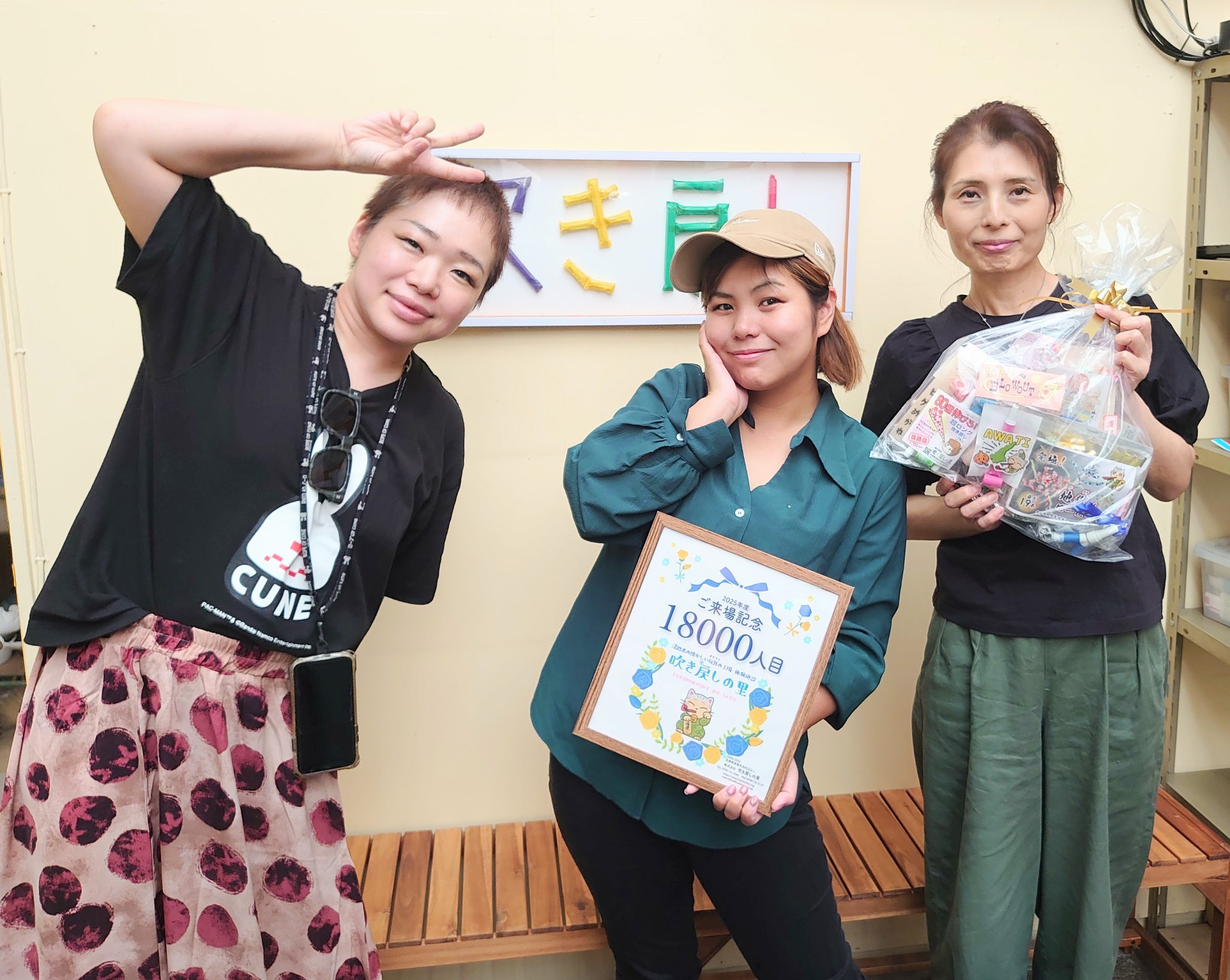 2025年18000人が来場されました!! (2025年9月28日) 2025年9月29日18000人目おめでとうございます!! 見事今年の18000人目になられた方は、京都府京都市よりお越しの R・Sさまです。3名様でお越しいただきました。 記念品と記念撮影 製作体験 吹いて遊ぼう♪ 2人で対決! ゴルフで狙えホールインワン! あたり付きUFOキャッチャ-に挑戦!